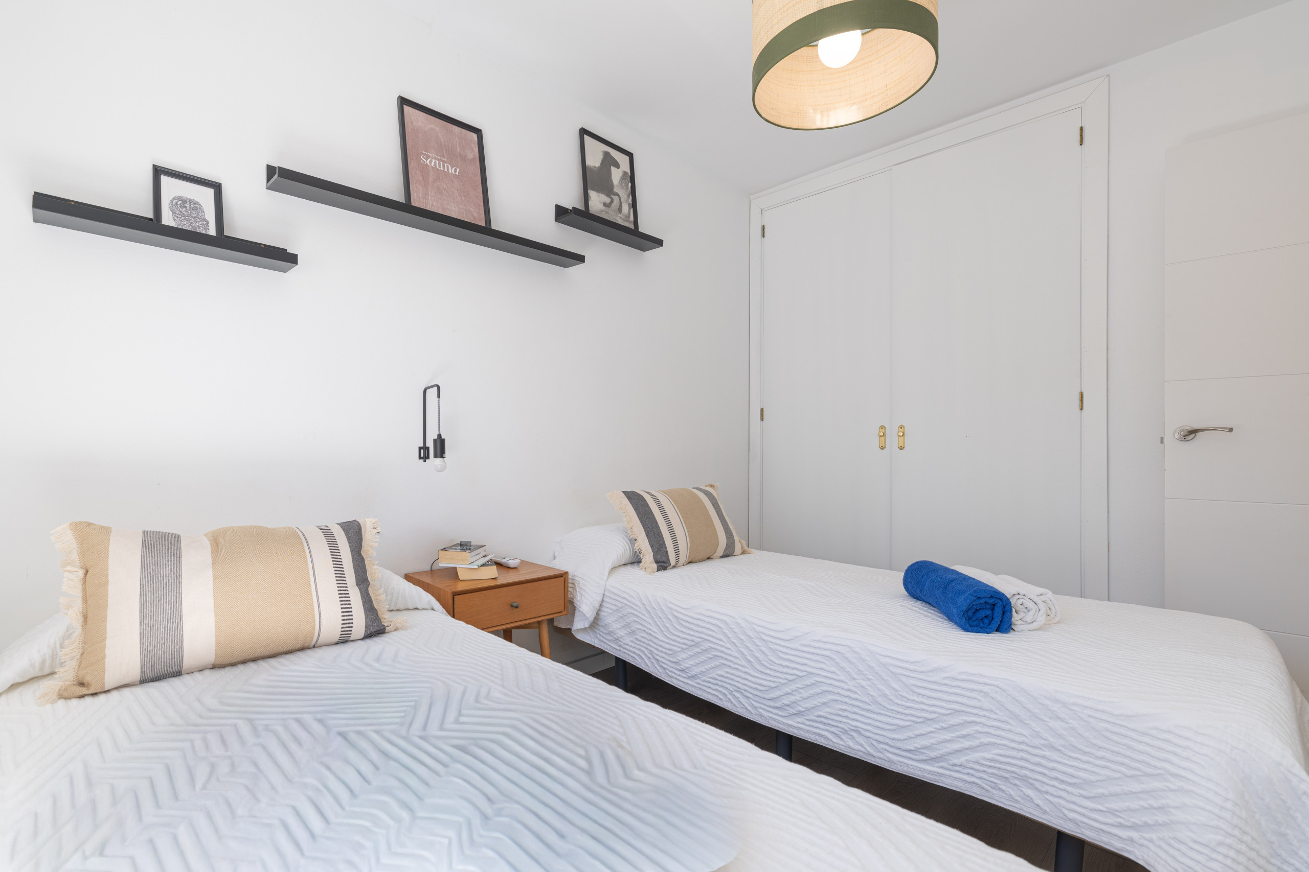 Und wenn die Müdigkeit schneller einsetzt als erwartet, können Sie sich in eines der beiden eleganten Schlafzimmer (1 mit Doppelbett, das andere mit 2 Einzelbetten) zurückziehen und neue Energie für den nächsten Tag tanken. Für eine erfrischende Dusche am Morgen gibt es ein herrliches Badezimmer, perfekt ausgestattet und mit einer absolut angenehmen Atmosphäre.