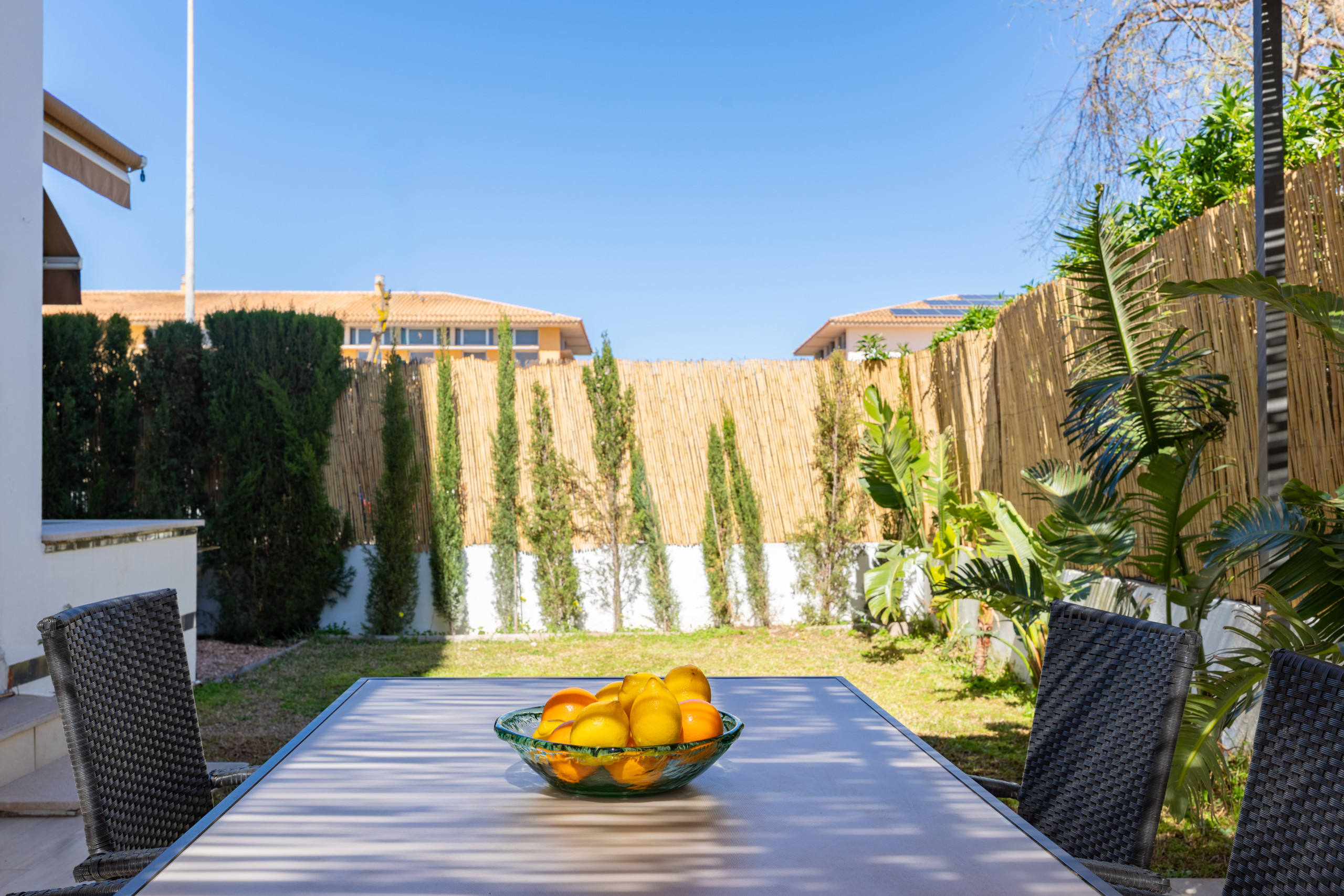 Wenn Sie es vorziehen, einen gemütlichen Tag zu verbringen, können Sie sich auf einem der Liegestühle entspannen und die Sonne genießen oder auf den Terrassenmöbeln unter der Palme, eine Partie Tischtennis spielen oder tolle Abende im Freien genießen, es gibt sogar einen tragbaren Grill.