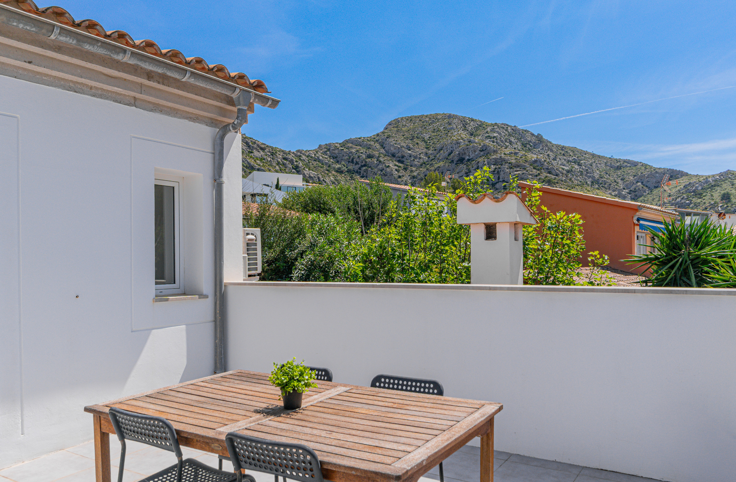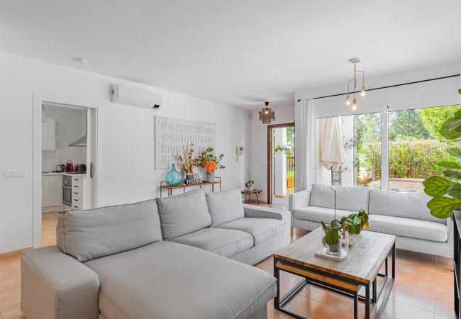 Diese charmante Finca in Alcúdia, Mallorca, reflektiert mallorquinische Tradition mit einem minimalistischen Touch. Mit zwei Schlafzimmern (ein Doppel- und ein Einzelzimmer) kombiniert sie rustikale Elemente wie Holzbalken mit einem hellen und modernen Design.
