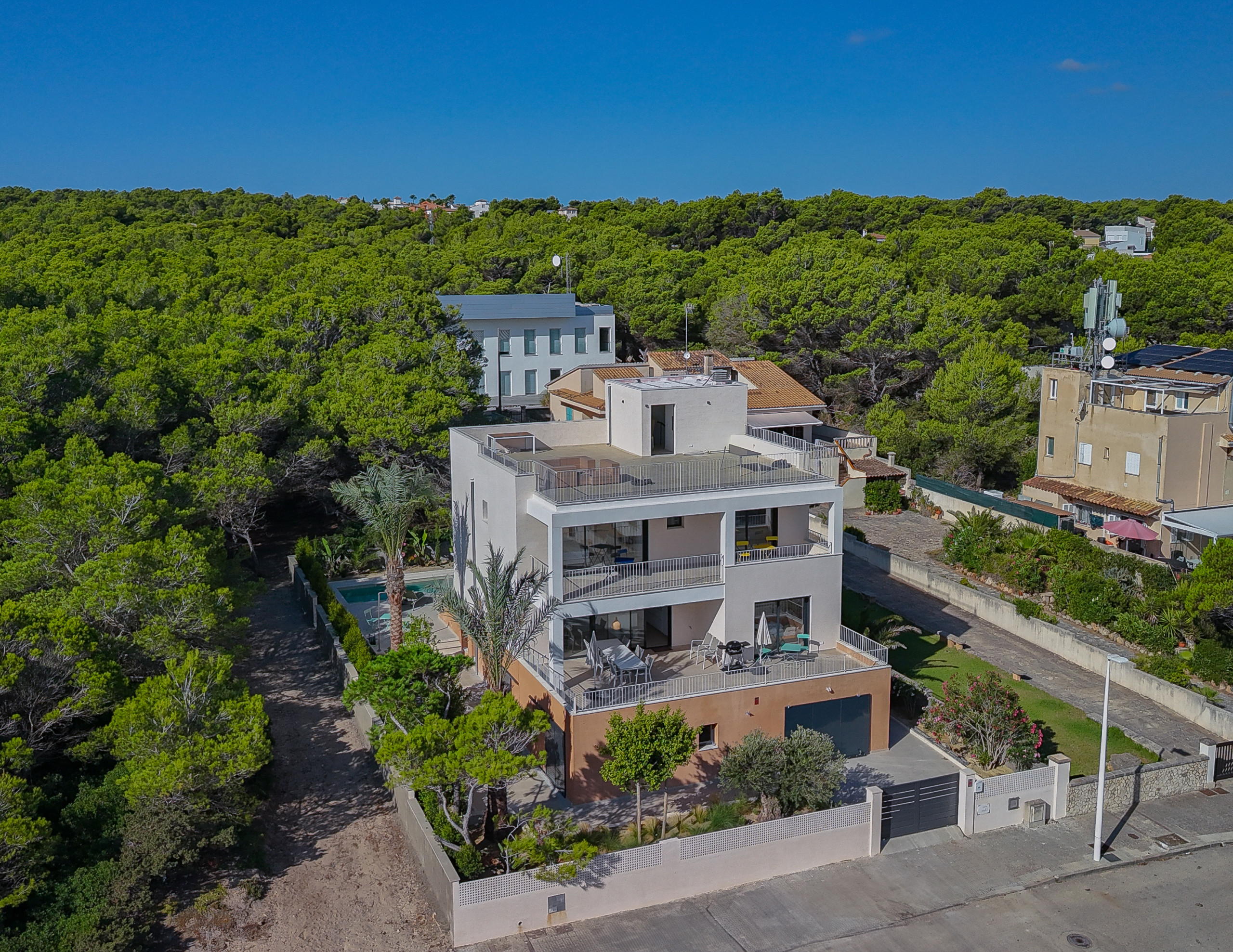 Dieses exklusive und neu erbaute Haus befindet sich in dem ruhigen und malerischen Küstendorf Son Serra de Marina und vereint perfekt modernes Design, höchsten Komfort und eine einzigartige Verbindung zur Natur. Es liegt 250 Meter vom Sandstrand entfernt und ist von geschützten Grünflächen umgeben. Diese Immobilie bietet die ideale Zuflucht für diejenigen, die Privatsphäre, natürliche Schönheit und einen authentisch mediterranen Lebensstil suchen.