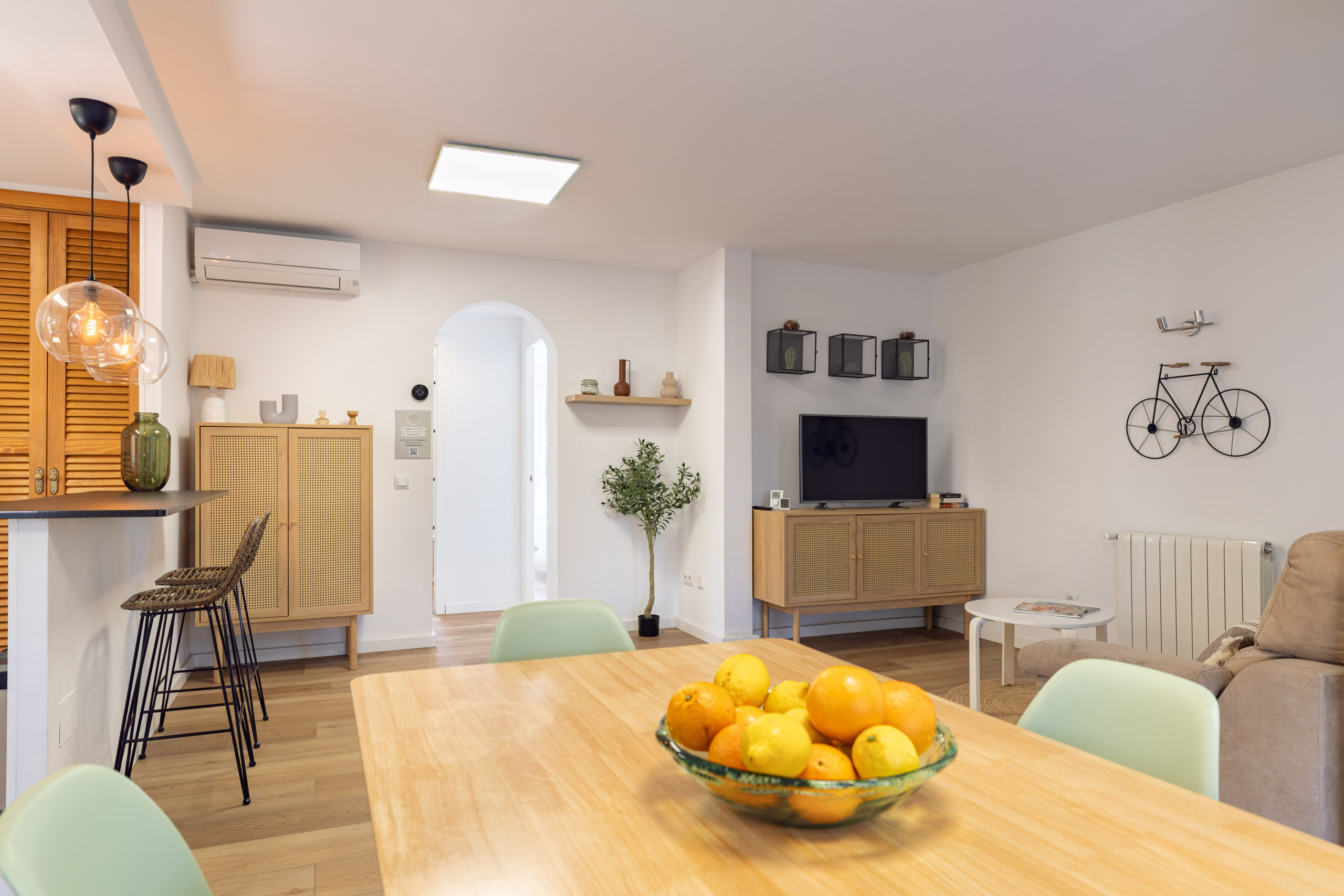 El interior de la casa se presenta de un estilo moderno. Los muebles nórdicos y colores frescos y brillantes hacen que las habitaciones brillen con el típico estilo mallorquín.