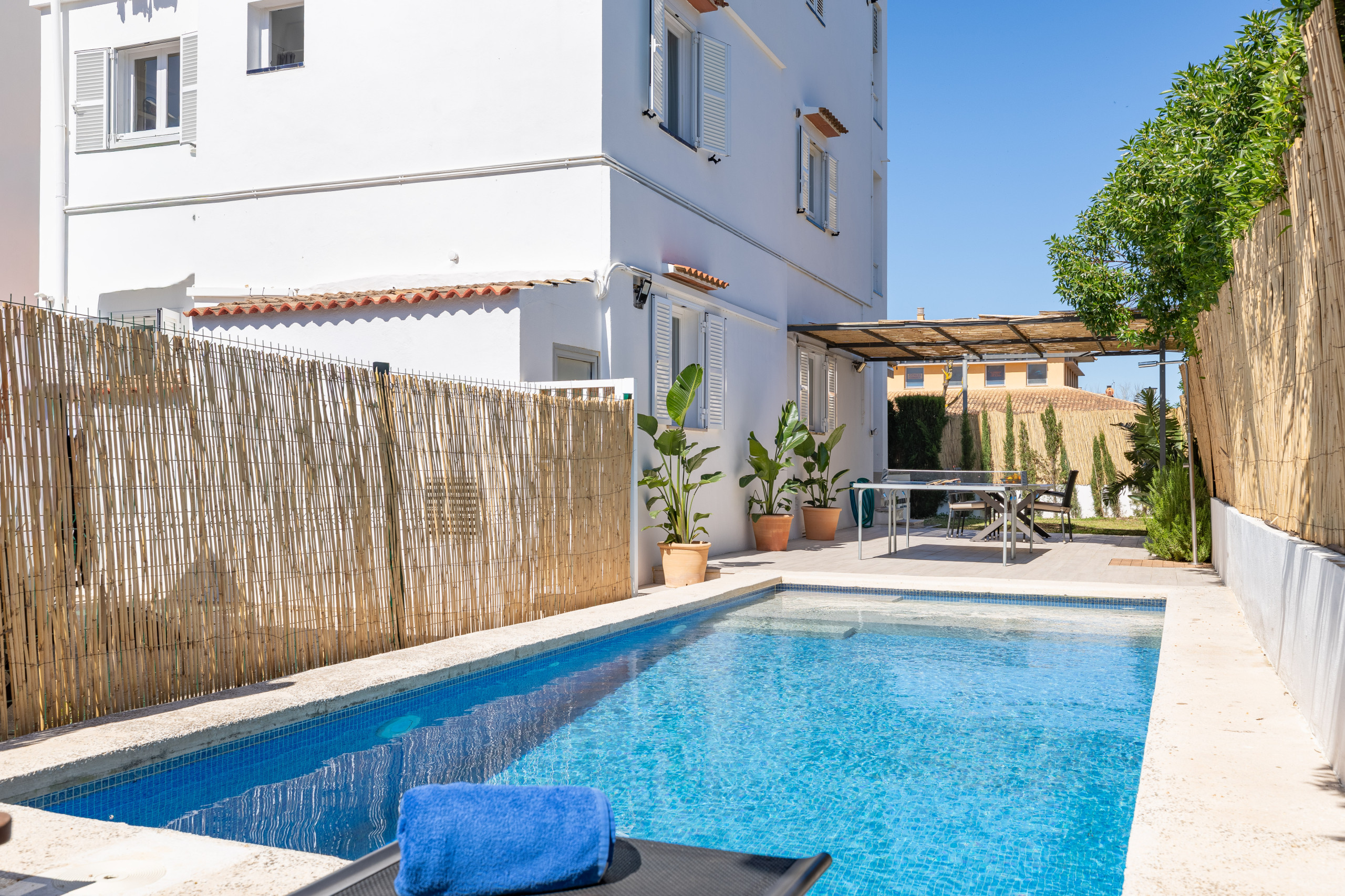 Amazing apartment with fully equipped kitchen, washing machine, table tennis and private pool. The location couldn’t be better: 5 min to the beach, supermarket across the street, walking distance to the port with many restaurants and bars, 25 min walver más