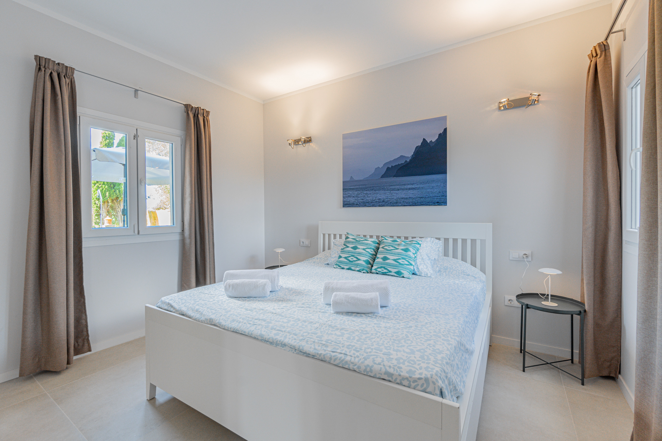 La villa está distribuida en 3 dormitorios, diseñados para garantizar el máximo descanso. El dormitorio principal cuenta con una cama doble y televisión, mientras que los otros dos dormitorios ofrecen dos camas individuales cada uno. Todos los dormitorios están equipados con aire acondicionado. La propiedad dispone de dos baños completos: uno con bañera y otro con plato de ducha, ambos equipados con secador de pelo para mayor comodidad.