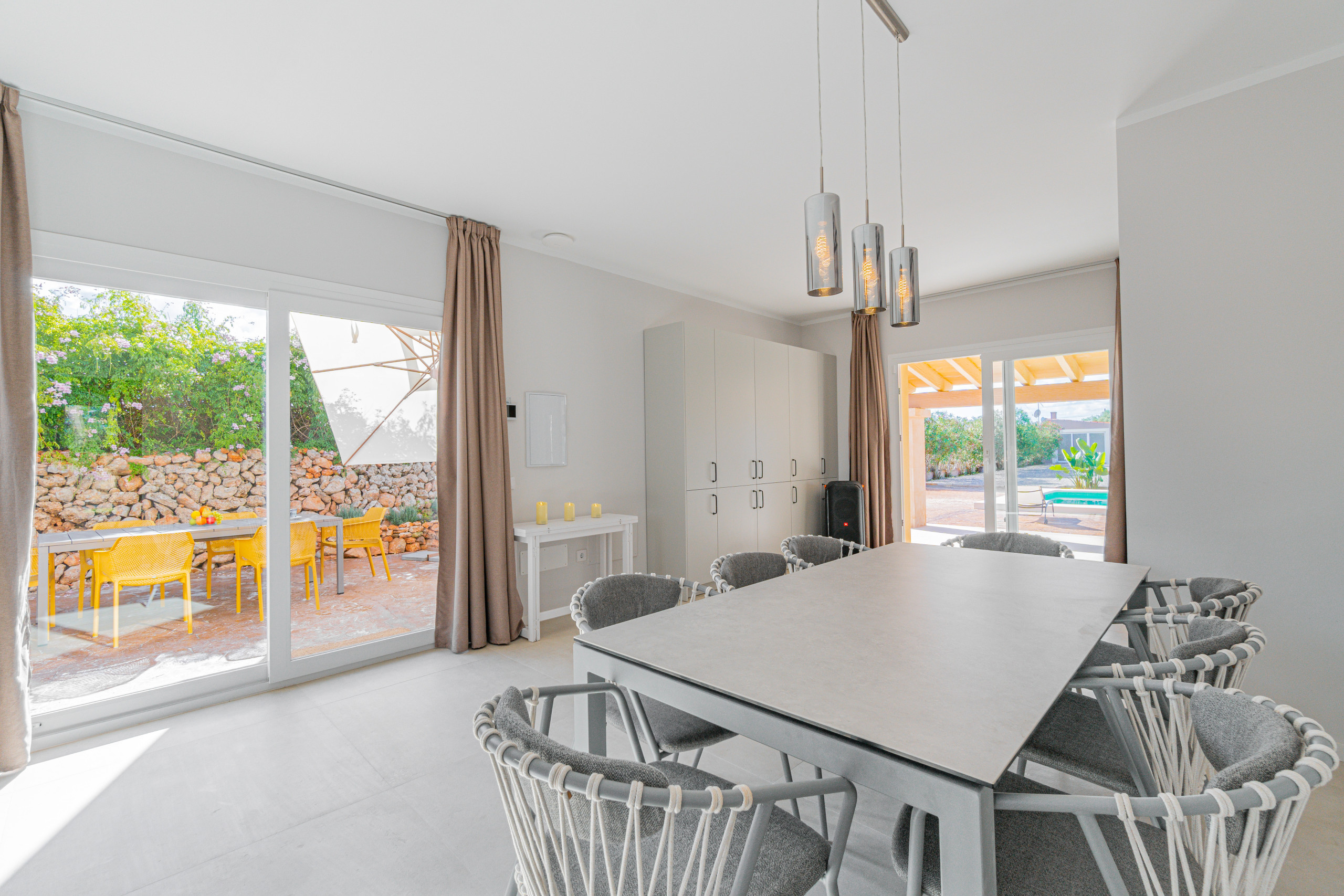 La villa dispone de dos comedores al aire libre, ideales para disfrutar de comidas bajo el sol o las estrellas, además de un salón-comedor interior amplio y acogedor en la planta principal. Para los amantes de la cocina, la propiedad cuenta con una cocina totalmente equipada y una barbacoa, perfecta para cenas al aire libre. También ofrece parking al aire libre para mayor comodidad. Ya sea para unas vacaciones familiares o una escapada con amigos, Villa Sarabo ofrece el equilibrio perfecto entre tranquilidad, espacio y confort en un entorno natural y auténtico de Mallorca.