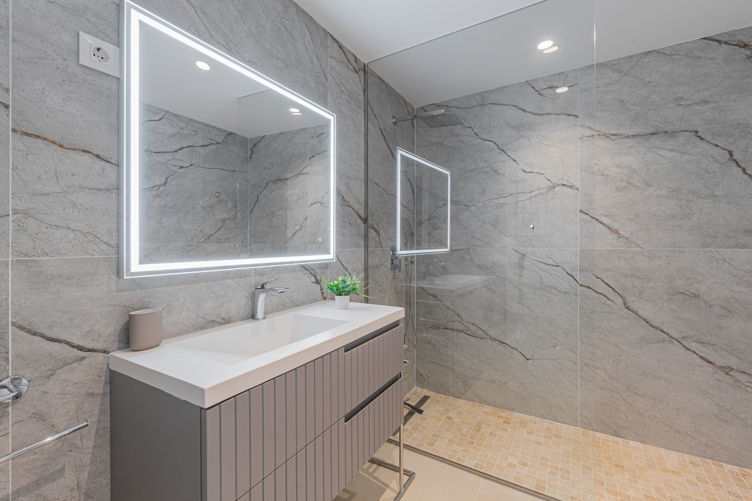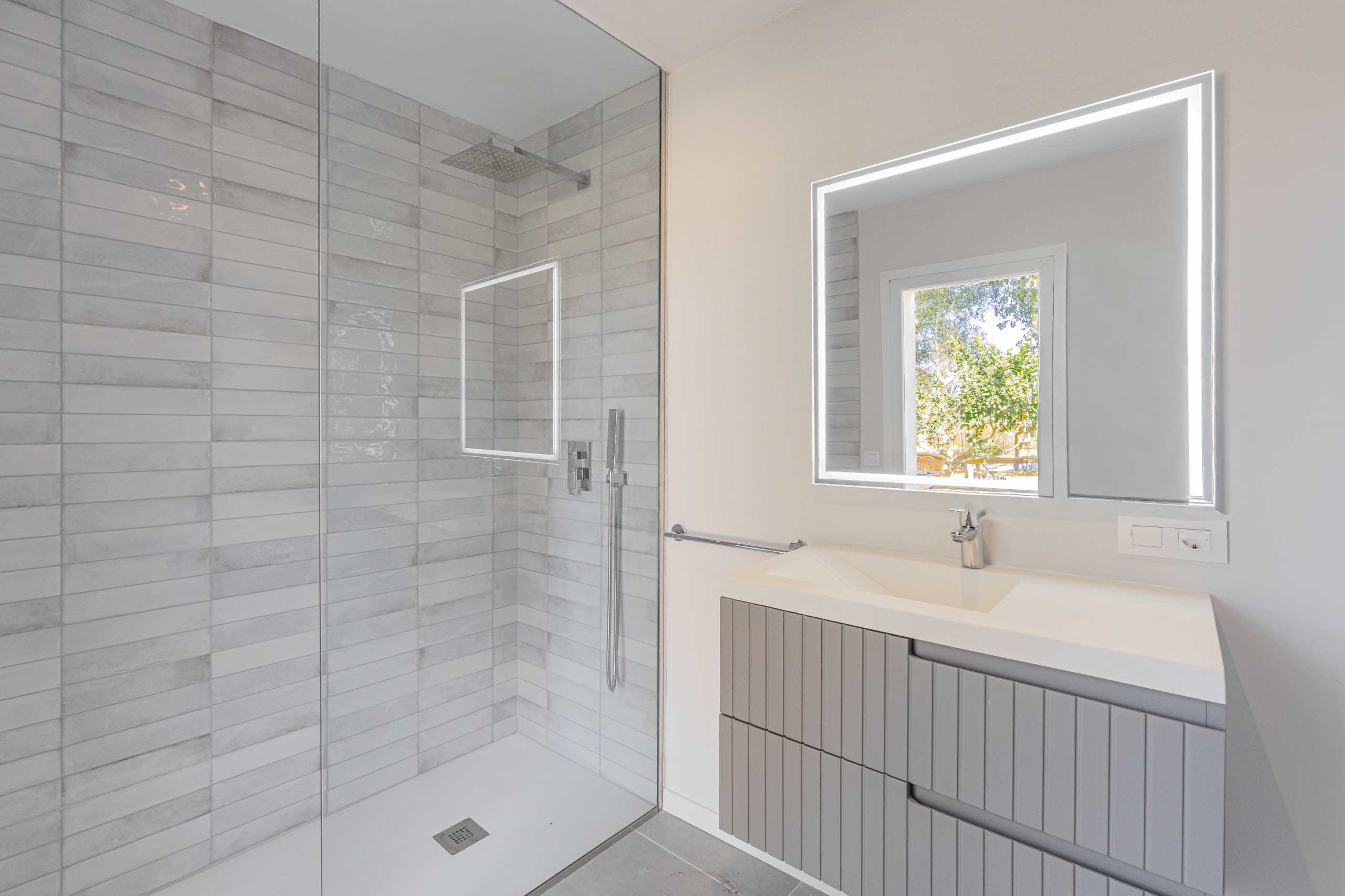 Segunda planta: 2 dormitorios, uno de ellos con baño en suite con ducha, WC y doble lavabo, y otro baño adicional en esta planta. En el exterior encontrarás una piscina privada (1,20 m x 1,80 m de profundidad) perfecta para refrescarte en los días soleados, junto con una ducha exterior y un baño adicional con ducha y WC en la zona de piscina.