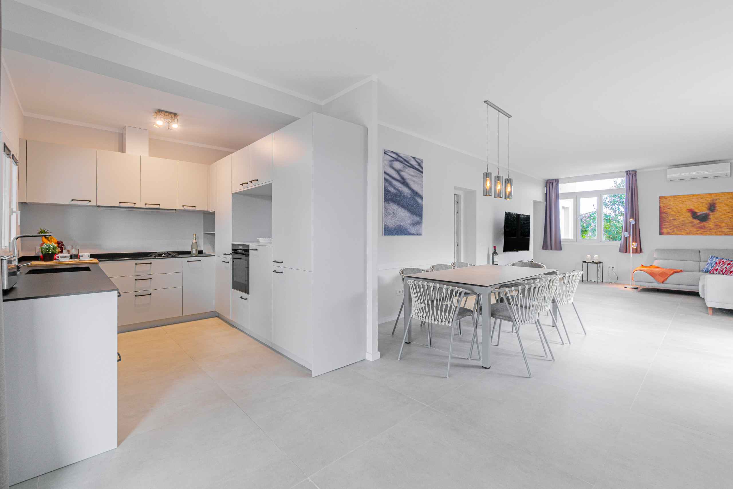 La cocina, totalmente equipada, incluye una cocina de gas y lavavajillas, permitiéndote preparar tus platos favoritos con facilidad. Para tu entretenimiento y comodidad, la villa ofrece TV satélite y Wifi de alta velocidad, perfecto para aquellos que necesiten teletrabajar durante su estancia.