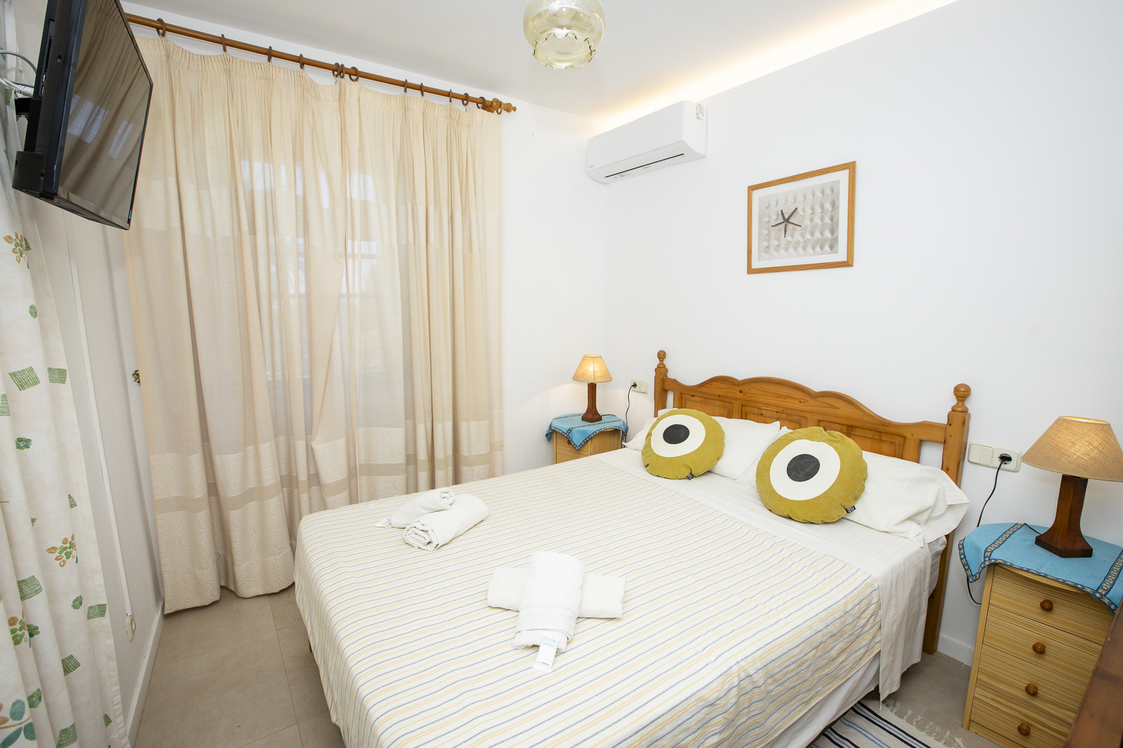 La villa está distribuida en 3 dormitorios, diseñados para garantizar el máximo descanso. El dormitorio principal cuenta con una cama doble y televisión, mientras que los otros dos dormitorios ofrecen dos camas individuales cada uno. Todos los dormitorios están equipados con aire acondicionado. La propiedad dispone de dos baños completos: uno con bañera y otro con plato de ducha, ambos equipados con secador de pelo para mayor comodidad.