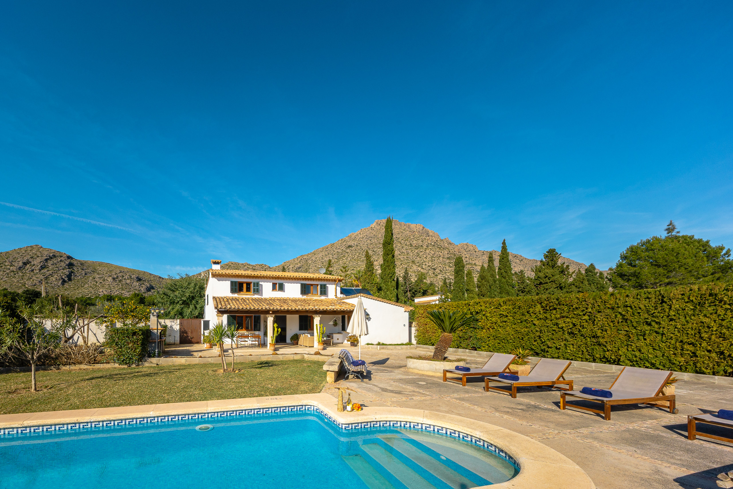 The villa is spacious, beautifully maintained, and feels like a true Mallorcan retreat. The private pool and lovely garden were perfect for our family – kids had so much space to play. Quiet location but still close enough to Port de Pollença for dinver más