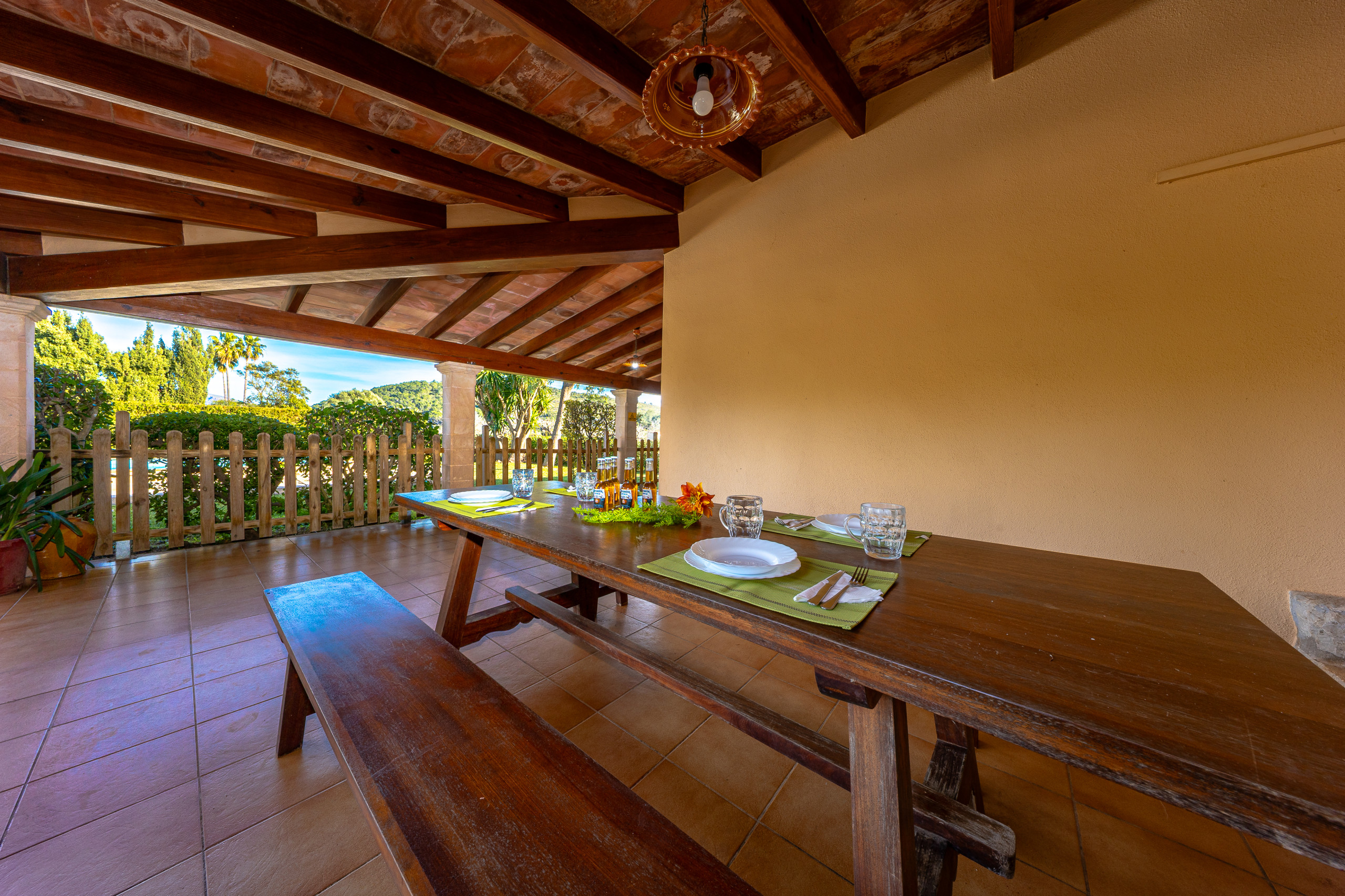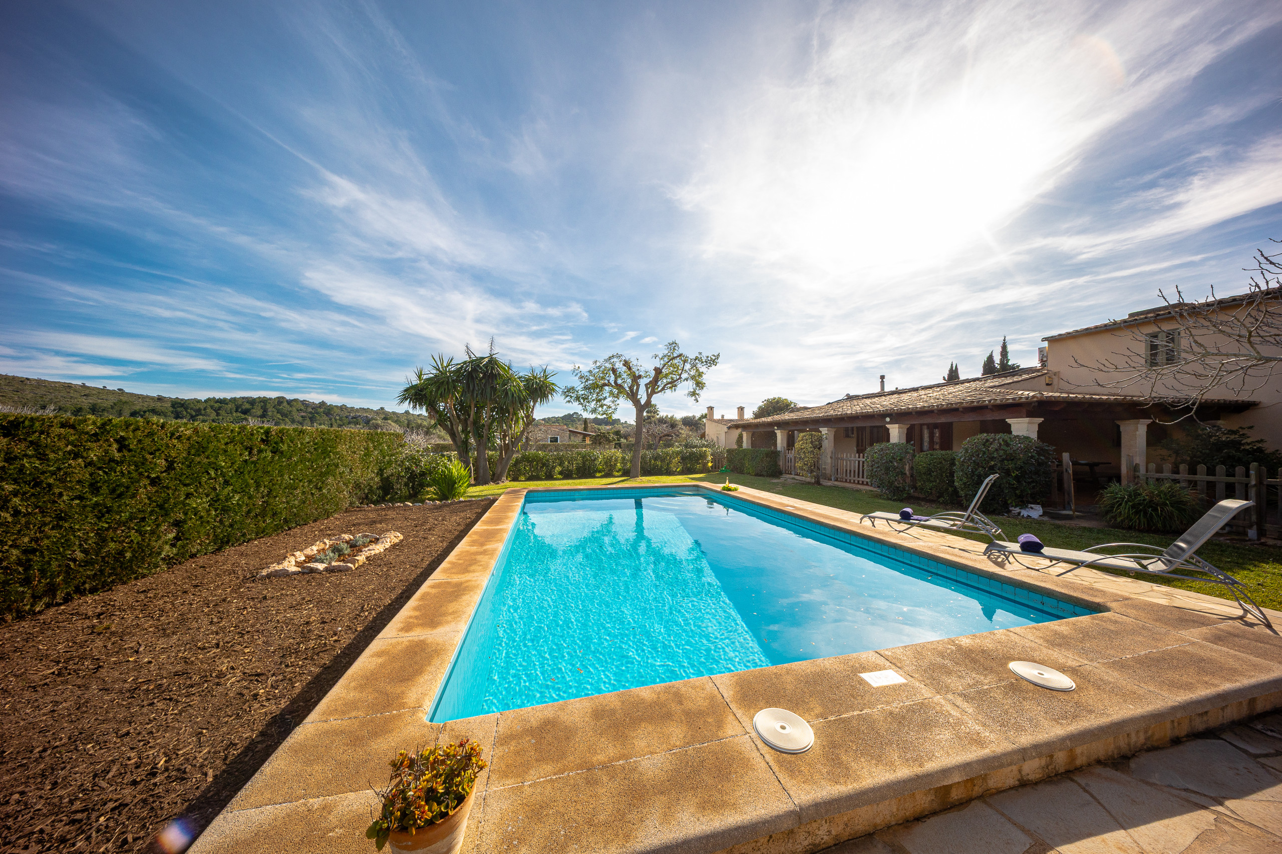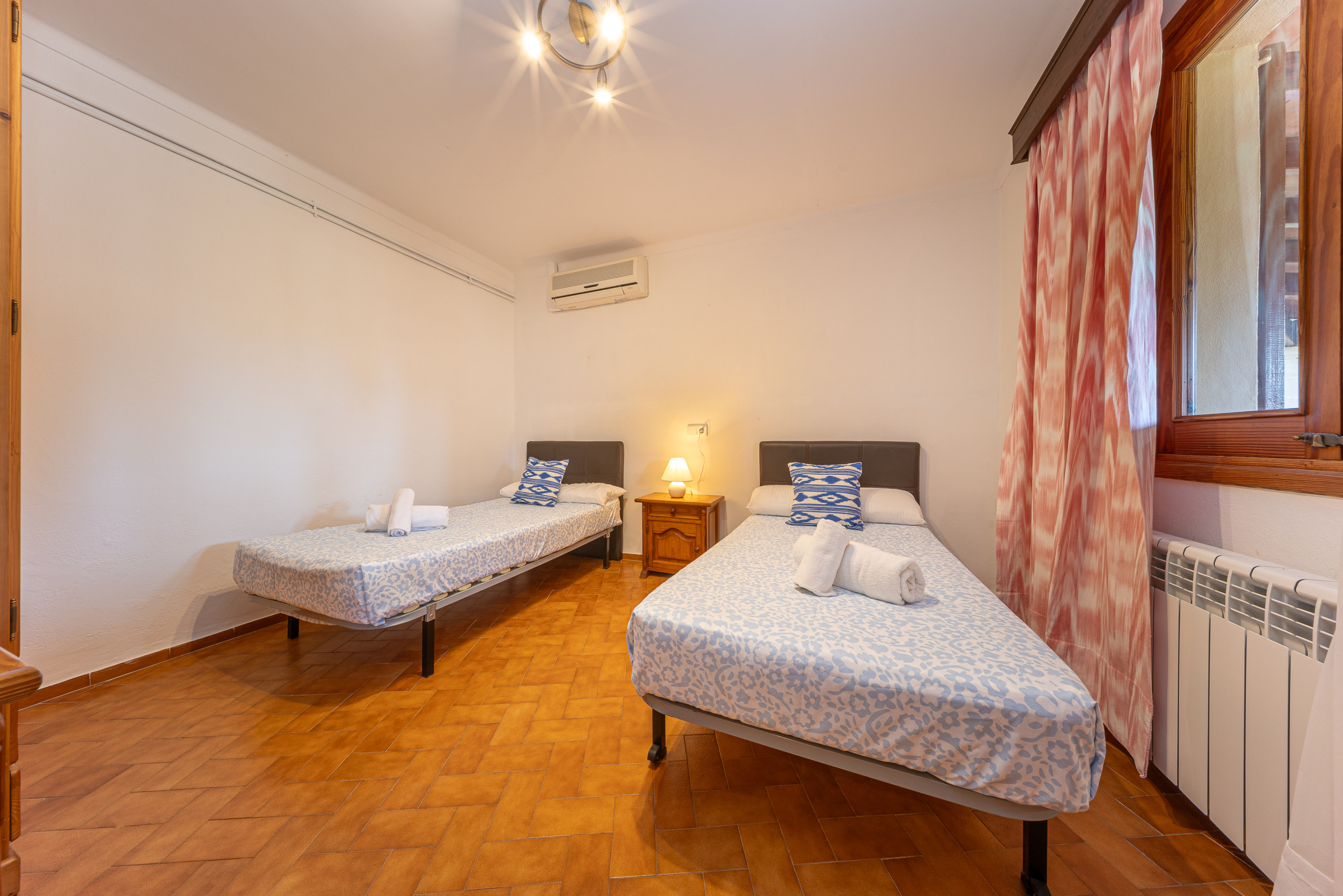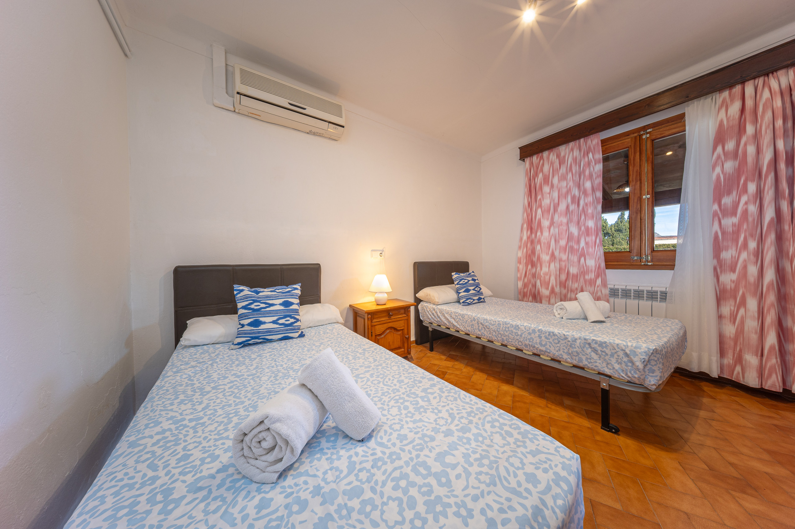Independent villa of 100 m² in a quiet area of Pollensa (Mallorca), perfect for families or groups of up to 6 people. Located just 3 km from Puerto Pollensa centre, sandy beaches and seafront promenade. Easy car access, with private parking right at the property's door. The villa has a private pool, spacious and fully fenced garden (maximum privacy and security, ideal for children or pets), and several terraces with barbecue for outdoor dining. It features 2 bedrooms, 1 double and 1 twin, bright with comfortable beds and spacious wardrobes, all with individual air conditioning. The independent kitchen is fully equipped: fridge-freezer, dishwasher, microwave, coffee maker, ceramic hob and all basic utensils needed to cook without problems. Additionally, it includes fast Wi-Fi throughout the house, iron and ironing board. The property is well-maintained and prepared for a comfortable and hassle-free stay: close to restaurants, supermarkets and services (5-10 minutes by car), but with total tranquillity and without external noise.